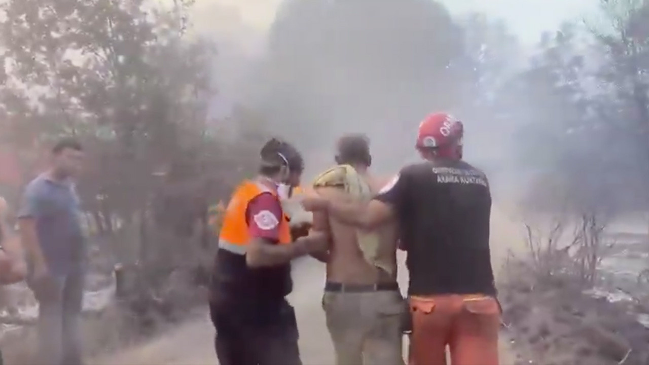 Orman işçisi yaşadığı olayın şokundaydı. Üzerindeki tişörtünü çıkartmış sürekli 'yanıyor, yanıyor, yanıyor' diyordu.