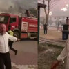 -Orman yangınıyla mücadele için işe giren adamlar şu yangından korkup ağlayarak burdan kaçtılar."