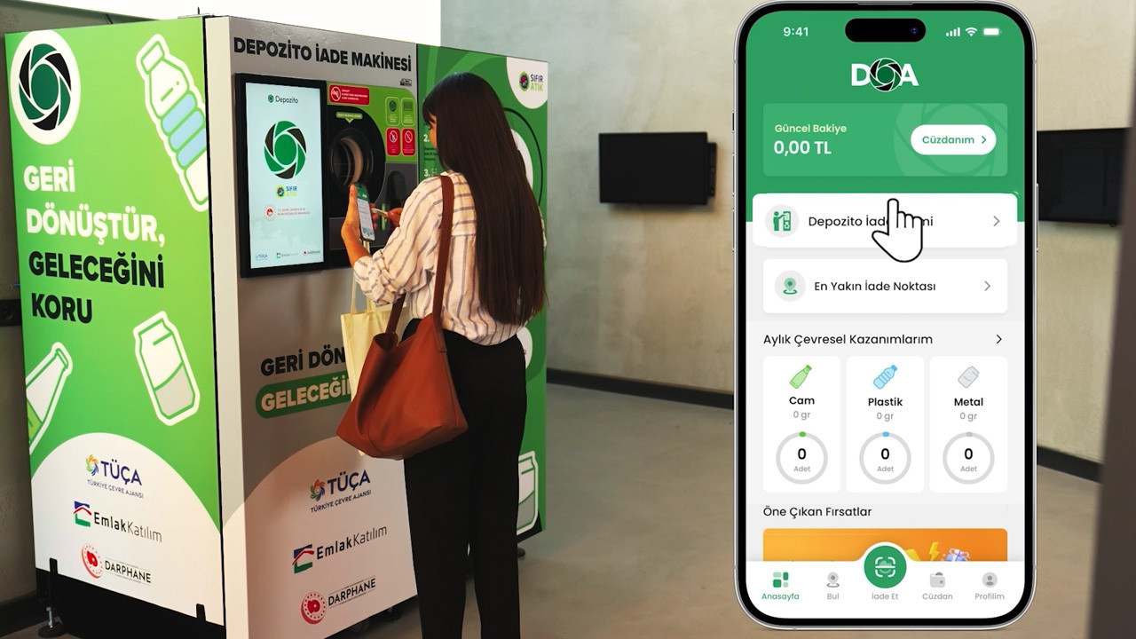 Tüketicilerin iade süreçlerinde kullanacağı mobil uygulama “Depozitosu Olan Ambalajlar (DOA)” da kullanılmaya başlandı. Bu sayede cep telefonlarına DOA uygulamasını yükleyen vatandaşlar depozito iade makinelerine QR kod okutup iade ettikleri ambalajlara karşılık gelen teşvik bedelini dijital cüzdanlarında biriktirebilecek.