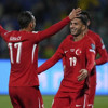 İrfan Can Kahveci, Bulgaristan'a attığı gol sonrası sevincini Oğuz Aydın ile paylaştı.