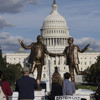 ABD'de Başkan Donald Trump ile reşit olmayan kız çocuklarına yönelik fuhuş ağı oluşturduğu iddiasıyla yargılanırken hapishanede ölü bulunan milyarder Jeffrey Epstein'ı ele ele tasvir eden ve geçen hafta kaldırılan heykel, tekrardan Kongre binası önüne yerleştirildi.