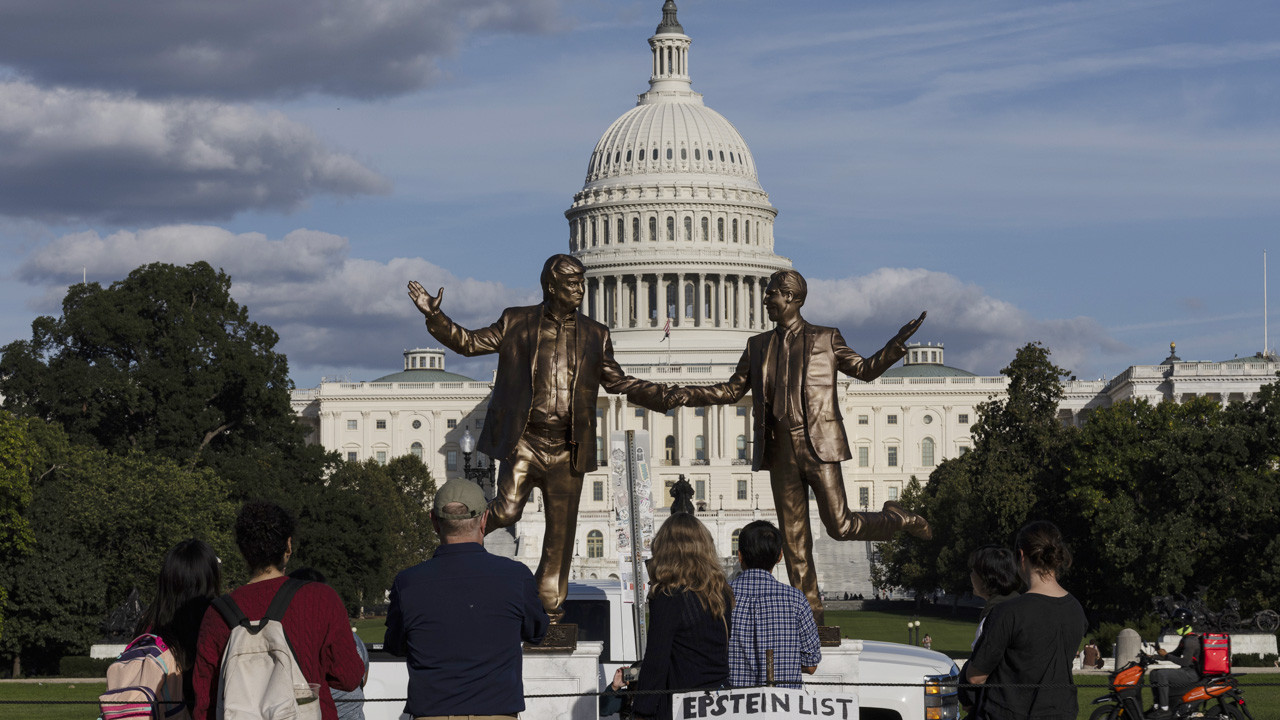 ABD'de 23 Eylül'de Kongre binası önüne Trump ile Epstein'ı ele ele tutuşurken tasvir eden heykel konulmuştu. Heykelin altında yer alan plakada "Sonsuza dek en iyi arkadaşlar" ifadesi bulunuyordu.