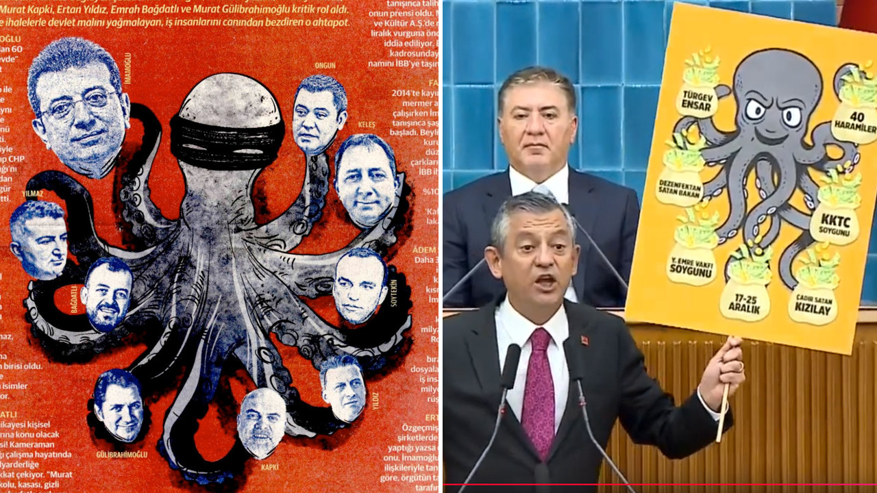 CHP Genel Başkanı Özgür Özel, partisinin grup toplantısında iktidarı yolsuzlukla suçlayıp ahtapot gösterdi. Özel'in "Yeni Şafak, hazırla manşeti, en güzel sen yapıyorsun mizanpajı. Hadi Yeni Şafak!" çağrısına gazete, manşetten yanıt verdi.