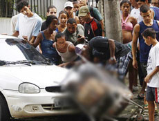 Associated Press haber ajansı muhabiri bu korkunç manzaranın yanından kucağında çocuğuyla geçen bir kadını görüntülerken, Rio varoşlarında yaşayan insanlar için sokaklarda kol gezen ölümün ne kadar sıradan bir şey haline geldiğini de çarpıcı bir şekilde resmetti.