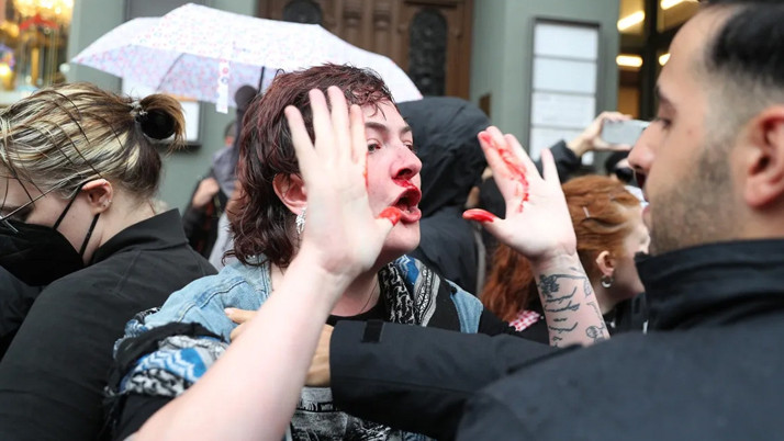 Berlin'de bulunan Hackescher’de, gazetecilerin öldürülmesini ve Gazze’deki soykırımı protesto etmek amacıyla düzenlenen gösteride polis, yumruk attığı kadın göstericiyi gözaltına aldı..