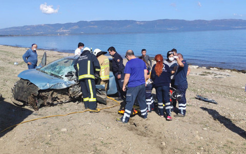 Galerinin tamamı için tıklayınızErdi Güleç’in cansız bedeni, cumhuriyet savcısının incelemesinin ardından itfaiye ekiplerince sıkıştığı otomobilden çıkarıldı.