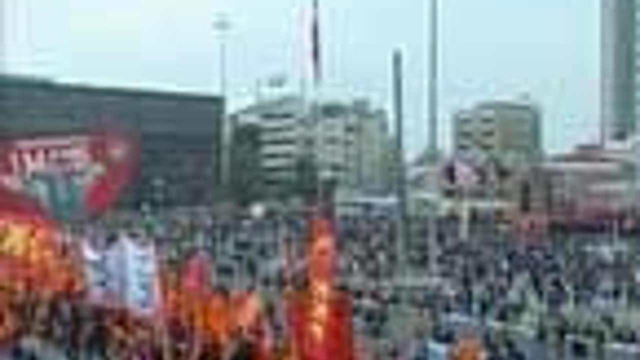 Sendikalar, siyasi partiler, sivil toplum örgütleri ve emekçiler, 1 Mayıs'ı, Taksim Meydanı'nda 1 milyon kişiyle kutlamayı planlıyor... 1 Mayıs İşçi Bayramı kutlamaları başladı. Sabahın erken saatlerinden itibaren Taksim'e çıkan bölgelerde toplanan işçiler, Taksim Meydanı'na doğru yürüyüşe geçti. Meydana doğru yürüyüşe geçen ilk kortej İnönü Stadı'nın önünde toplanan Türk-İş, Hak-İş ve Memur-Sen oldu. Şişli'de toplanan DİSK ve meslek odaları da yürüyüşe geçti. Bu kortej Radyo evinin önünde polis tarafından kurulan arama noktasından geçtikten sonra Taksim Meydanı'na giriş yapacak. KESK önderliğinde Şişhane tarafından yürüyecek kortej ise toplanmaya devam ediyor. Bu kortej meydana Tarlabaşı'ndan giriş yapacak. KESK kortejinin önünde Türkiye'de kullanılan 6 dilde yazılmış "Yaşasın 1 Mayıs" pankartı olacak. * Haberi Ekle: * Google * Facebook * Twitter * FriendFeed * Delicious * Yazı Boyutu: * A+ * A- Akın akın Taksim'e! Sendikalar, siyasi partiler, sivil toplum örgütleri ve emekçiler, 1 Mayıs'ı, Taksim Meydanı'nda 1 milyon kişiyle kutlamayı planlıyor... 01 Mayıs 2011 Pazar, 10:08:40 Akın akın Taksim'e! 1 Mayıs İşçi Bayramı kutlamaları başladı. Sabahın erken saatlerinden itibaren Taksim'e çıkan bölgelerde toplanan işçiler, Taksim Meydanı'na doğru yürüyüşe geçti. Meydana doğru yürüyüşe geçen ilk kortej İnönü Stadı'nın önünde toplanan Türk-İş, Hak-İş ve Memur-Sen oldu. Şişli'de toplanan DİSK ve meslek odaları da yürüyüşe geçti. Bu kortej Radyo evinin önünde polis tarafından kurulan arama noktasından geçtikten sonra Taksim Meydanı'na giriş yapacak. KESK önderliğinde Şişhane tarafından yürüyecek kortej ise toplanmaya devam ediyor. Bu kortej meydana Tarlabaşı'ndan giriş yapacak. KESK kortejinin önünde Türkiye'de kullanılan 6 dilde yazılmış "Yaşasın 1 Mayıs" pankartı olacak. Video için tıklayınız... Meydandaki ses düzeni ve diğer organizasyonların hazırlanması da tamamlandı. İstanbuldaki kutlamaların güvenliği için toplam 39 bin 200 polis görev yapıyor. KEMAL KILIÇDAROĞLU KATILMIYOR Türk-İş kortejinde bulunan Cumhuriyet Halk Partisi'de (CHP) meydana doğru yürüyüşe geçti. Kemal Kılıçdaroğlu'nun Taksim'deki kutlamalara katılmayacağı, Kılıçdaroğlu'nun Ankara'da olduğu belirtildi. Şişhane tarafından yürüyüşe geçecek olan KESK önderliğindeki grupta ise Barış ve Demokrasi Partisi'de (BDP) bulunuyor. 1 MAYIS 1977'DE KATLEDİLENLER KAZANCI YOKUŞU'NDA ANILDI Sendika ve meslek odaları ile sivil toplum örgütlerinden oluşan bir grup ise 1 Mayıs 1977'de katledilen işçiler için Kazancı Yokuşu'nda bir dakikalık saygı duruşunda bulundu ve yokuşa çiçekler bıraktı.