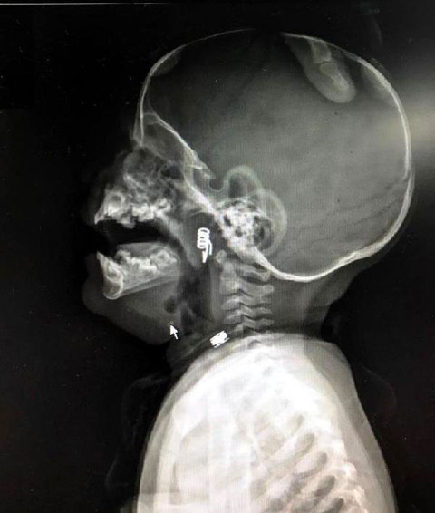 Galerinin tamamı için tıklayınızNevşehir'de 1 yaşındaki erkek bebek Ö.Y., dün akşam saatlerinde elinde mandalla oynarken, parçalanan mandalın yayını ağzına aldı. Duruma müdahale eden bebeğin babası, yayı çocuğunun ağzından çıkarmaya çalışırken, yay bebeğin genzine kaçarak saplandı.