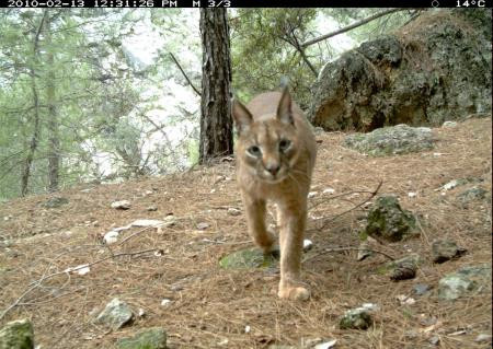Galerinin tamamı için tıklayınızDÜNYADA soyu tükenmekte olan 120 memeli arasında yer alan kedigiller familyasından karakulak (Caracal caracal), 13 yıl önce doğal ortamında ilk kez görüntüleyen Batur Avgan, bu hayvanı Antalya-Düzlerçamı ormanlık alanında ikinci kez hem gece, hem gündüz görüntüledi.