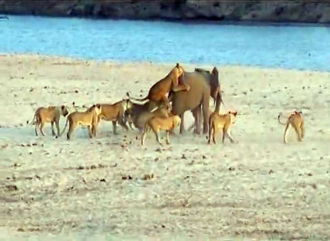 Sürüsünden ayrılan genç fili farkeden aslanlar saldırıya geçti.