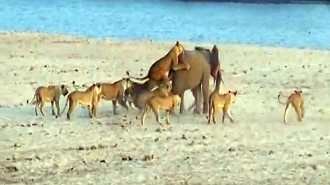 Sürüsünden ayrılan genç fili farkeden aslanlar saldırıya geçti. Genç fil kendisine saldıran 14 aslanla amansız bir mücadeleye girişiyor. Mücadelenin sonunda aslanlardan kurtulmayı başarıyor. İşte o anlar...