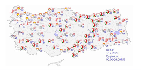 Galerinin tamamı için tıklayınızMeteoroloji Genel Müdürlüğü tarafından yapılan tahminlere göre: Ülkemiz genelinin parçalı, yer yer çok bulutlu, Batı ve Orta Akdeniz’in iç kesimleri, Doğu Akdeniz, İç Anadolu’nun güney ve batısı, Doğu Karadeniz, Doğu ve Güneydoğu Anadolu’nun batısı ile Kütahya, Denizli, Afyonkarahisar, Nevşehir, Yozgat, Bolu, Erzurum, Kars ve Ardahan çevreleri ile Aydın'ın ve Muğla'nın iç kesimlerinin yerel olmak üzere sağanak ve gök gürültülü sağanak yağışlı geçeceği tahmin ediliyor. Yağışların, Doğu Karadeniz (Giresun hariç), Erzincan, Ardahan, Gaziantep ve Kilis çevreleri ile Erzurum'un kuzey kesimlerinde yer yer kuvvetli olması bekleniyor. Doğu Anadolu’nun güneyi ile Güneydoğu Anadolu’da toz taşınımı görüleceği tahmin ediliyor.