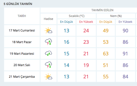 Galerinin tamamı için tıklayınızİZMİR HAVA DURUMU : İzmir'de cumartesi günü 24 derece sıcaklık ve şahane bir hava var. Pazar günü ise gökgürültülü sağanak yağışla birlikte hava sıcaklığı 23 derece olacak.