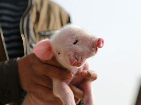 Çin'in Nanchang şehrinde doğan 2 burun ve 3 gözlü domuz görenleri şaşkına çevirdi.