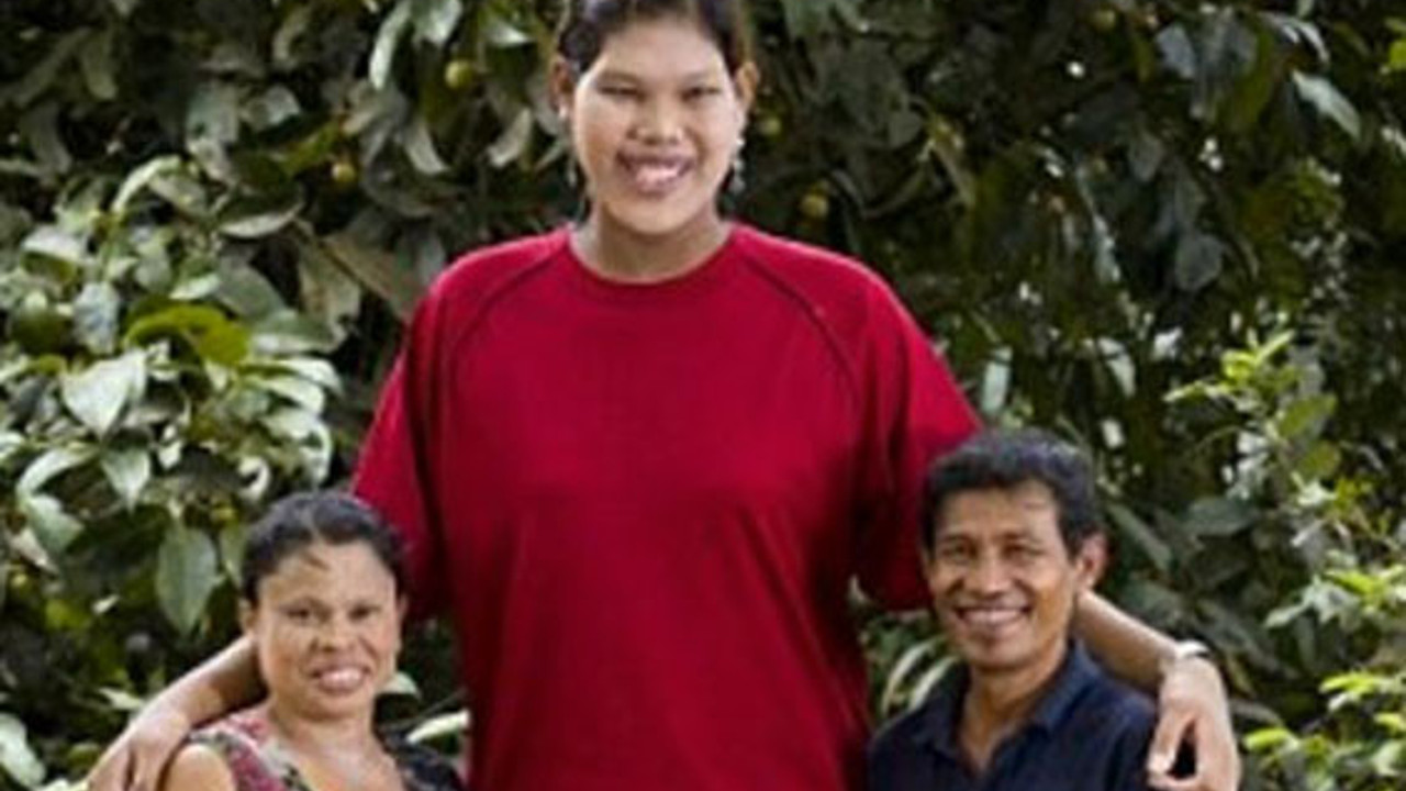 2 metre 10 santimlik dev kız henüz 19 yaşında ve kendi yaş grubunda dünyanın en irisi unvanını taşıyor. tayland'da 19 yaşındaki malee duangdee, 2 metre 10 santimlik boyuyla görenleri şaşırtıyor. beynindeki bir tümör nedeniyle hormonları çok çalışan ve büyümesi durmayan 130 kiloluk dev kız zor...