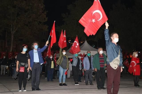 Galerinin tamamı için tıklayınız29 Ekim Cumhuriyet Bayramı'nın 97. yıldönümünde saat 19.23'te bazı vatandaşlar sokağa çıktı, bazı vatandaşlar ise ellerine bayrakları alarak balkon ve pencerelere çıktı.