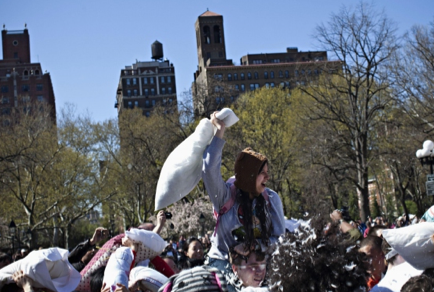 Galerinin tamamı için tıklayınızYastıklardaki tüylerin uçuşması nedeniyle adeta savaş alanına
