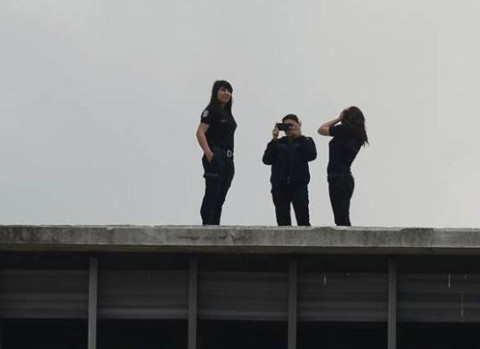 Değişik açılardan yaklaşık 10 dakika fotoğraf çekilen ve çatıdan ayrılan polisleri çevredekiler de ilgiyle izledi.