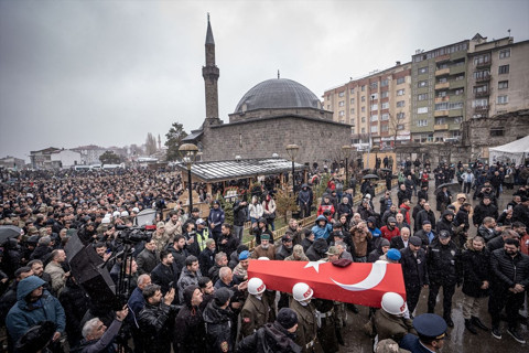 Galerinin tamamı için tıklayınız7 Temmuz 2022'de şehit olan Piyade Uzman Çavuş Nurettin Tokyürek'in naaşı 3 yıl sonra bulunmuştu. Şehit Nurettin Tokyürek için bugün Yakutiye ilçesindeki Narmanlı Camisi'nde öğle namazı sonrası tören düzenlendi. Şehidin Türk bayrağına sarılı naaşı, tören mangasınca bir süre omuzlarda taşınıp katafalka konuldu.