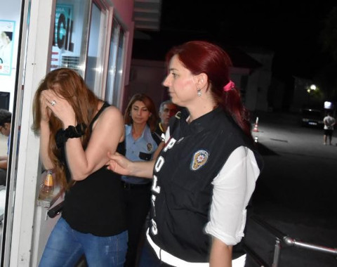 Galerinin tamamı için tıklayınızMarmaris İlçe Emniyet Müdürlüğü ekipleri, Kemal Elgin Bulvarı'ndaki üç yıldızlı bir otelde fuhuş yapıldığı ihbarı üzerine harekete geçti. Bugün saat 01.00 sıralarında otele operasyon düzenleyen polis, fuhuş yaptıkları belirlenen Gürcistan uyruklu T.G. (38) ve Rusya uyruklu G.A. (34), kadınlarla birlikte olan A.Ç. (40) ve D.I. (45) ile fuhşa aracılık yapan 'Nurdan' takma adlı Azerbaycan uyruklu N.R.'yi (46) gözaltına aldı.