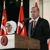 Türkiye Cumhurbaşkanı Recep Tayyip Erdoğan, Cumhurbaşkanlığı Külliyesi'nde 30 Ağustos Zafer Bayramı dolayısıyla resepsiyon verdi. Cumhurbaşkanı Erdoğan: "Bundan çeyrek asır önce, Türkiye'yi 3-5 milyar dolarlık operasyonlarla ekonomik olarak çok derin krizlere sokabiliyorlardı. Bugün bu rakamın 10-20 katı büyüklüğünde operasyonlara maruz kalıyor, yine de beklendiği gibi ekonomik çöküş yaşamıyoruz ve Allah'ın izniyle de yaşamayacağız." Cumhurbaşkanı Erdoğan: "Eskiden siyasi ve diplomatik olarak kolayca köşeye sıkıştırılabilen, Avrupa'da, Amerika'da rüzgar esse nezle olan bir Türkiye vardı. Bugün neredeyse her gün aleyhinde açıklamalar yapılmasına rağmen, malum kredi derecelendirme kuruluşlarının o sanal verdikleri notlarla bize provakatif dereceler ilan etmelerine rağmen biz kendi yolunda kararlılıkla ilerleyen bir Türkiye'de yaşıyoruz." Erdoğan: "Türkiye'yi parmaklarının ucunda oynattıkları devletçiklerle karıştıranlara bu ülkenin binlerce yıllık tarihini hatırlatmak zorunda kalıyoruz" dedi.