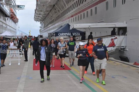 Galerinin tamamı için tıklayınızCarnival Vista’dan inen 4 bin yolcudan bir bölümü İzmir’in Selçuk ilçesindeki Efes Antik Kenti ve Meryemana Evi’ni ziyarete giderken, bir kısmı da yağmura rağmen Kuşadası Çarşısı’nı gezip, alışveriş yaptı. Kruvaziyer turizmin en önemli küresel markalarından Carnival Cruise Lines’a ait en büyük gemi olma özelliğine sahip ’Carnival Vista’nın Kuşadası’na ilk ziyareti sevindirdi. Programında İzmir Limanı olmasına karşın güvenlik nedeniyle rotasını Kuşadası’na çeviren dev gemi için, görünmez bir güvenlik çemberi oluşturuldu.
