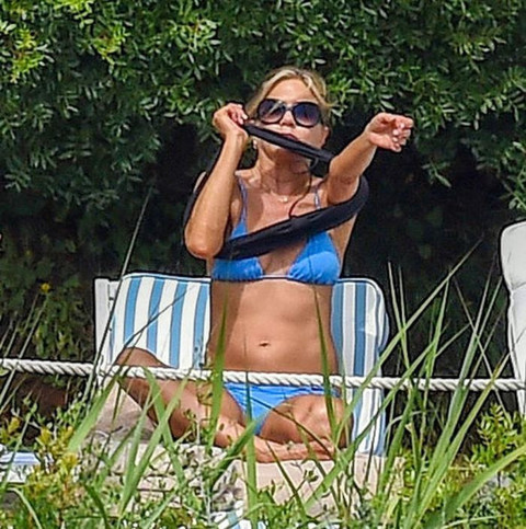 Paparazzilerin uzaktan görüntülediği Aniston, güneşlenme keyfi bitince de plaj kıyafetini giyip şapkasını taktı ve otelin girdi.