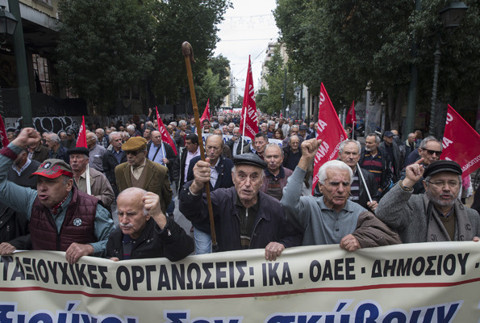 Galerinin tamamı için tıklayınızYunanistan’da emekliler, maaşlarındaki kesintilerin iade edilmesi için gösteri düzenledi. Başkent Atina'da emekli sendikalarının çağrısıyla toplanan yaklaşık 5 bin kişi, meclisin bulunduğu Sintagma Meydanı'na yürüdü. "Çaldıklarınızı geri verin" şeklinde slogan atan grup, "Hak ettiklerimizi iade edin" ve "Emekliler boyun eğmeyecek" yazılı pankartlar taşıdı.Olaysız şekilde yaklaşık 3 saat süren gösteri boyunca kent merkezinde bazı caddeler trafiğe kapatıldı.