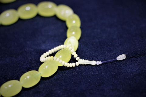Galerinin tamamı için tıklayınızTanyıldızı, çam reçinası olan 50 milyon yıllık fosil damla kehribarı işleyerek tane ebatları 1.6 milimetre olan bir tespih üretti.