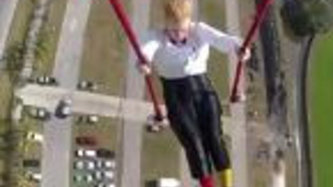 Bello Nock, Amerika'nın Florida Eyaleti'nde bir helikopterle yerden 500 metre yüksekliğe havalanırken, trapezde gösteriler yaptı