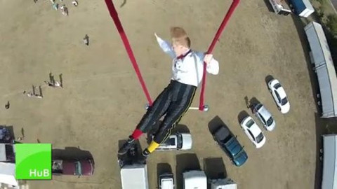 Bello Nock, Amerika'nın Florida Eyaleti'nde bir helikopterle yerden 500 metre yüksekliğe havalanırken, trapezde gösteriler yaptı