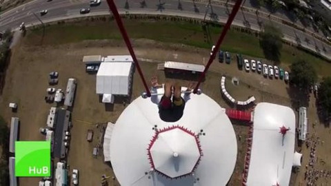 Bello Nock, Amerika'nın Florida Eyaleti'nde bir helikopterle yerden 500 metre yüksekliğe havalanırken, trapezde gösteriler yaptı