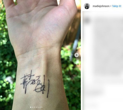 Dövmedeki yazı ilk bakışta anlamsız bir karalama gibi gözüküyor.