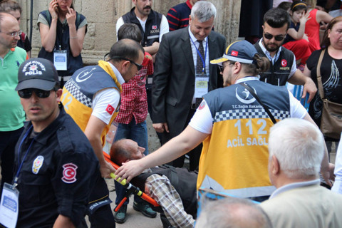 Galerinin tamamı için tıklayınızGeleneksel mesir saçımı, temsili Hafsa Sultan'ın kendisine şifa olan mesir macununun Sultan Camisi kubbe ve minarelerinden her yıl baharın gelişiyle halka saçılmasını buyurmasıyla başladı.