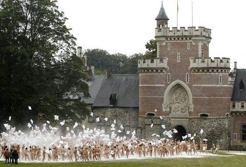 Dünyanın dört bir yanında kamuya açık alanlarda çektiği çıplak fotoğraflarla tanınan ABD’li fotoğrafçı Spencer Tunick bu kez Belçikalıları soydu. 'Uyuyan Güzellikler' başlıklı çalışmada katılımcılar yastık savaşı yaparak eğlendiler. 800 kişinin katıldığı çekimler renkli görüntülere sahne oldu.