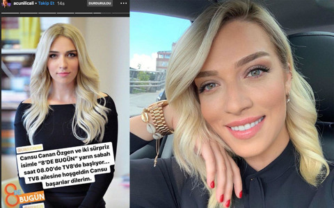 Galerinin tamamı için tıklayınızIlıcalı'nın paylaşımıyla daha önce Habertürk ve A Haber'de görev yapan ünlü sunucu Cansu Canan Özgen'in TV8'e transfer olduğu öğrenildi. Özgen, 5 Ağustos itibariyle '8'de Bugün' adlı programın sunuculuğunu üstlenmeye başladı.