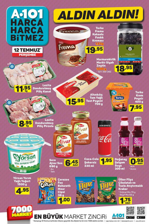 Galerinin tamamı için tıklayınızA101 12 Temmuz aktüel kataloğu bugün en çok arananlar arasına girdi. Haftanın 7 günü en uygun ürün garantisi sunan A101 12 Temmuz perşembe günü de onlarca üründe büyük indirim fırsatı sunuyor.