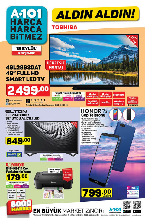 A101 aldın aldın 19 Eylül Perşembe indirim kataloğu televizyon, cep telefonu var