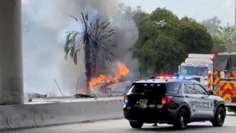 Uçağın, Boca Raton'da bir otoyola düştüğü ve bir arabaya çarparak alev aldığı belirtildi.