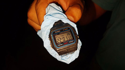 Hasan Karagöz’ün kolunda bulunan ve hala çalışır durumdaki saati oğlu Mehmet Karagöz’e teslim edildi.