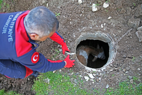 ADANA 'da bir köpeğin önünde sürekli havladığı açık rögardan yağmur suyu kanalına düştüğü fark edilen ineği kurtarmak için itfaiye ekipleri seferber oldu. Merkez Yüreğir ilçesi Güzelevler Mahallesi'nde motosikletiyle seyir halindeki Erkan Savun, bir köpeğin başında havladığı yol kenarındaki rögardan baktığında bir ineğin yağmur suyu kanalına düştüğünü gördü. Savun'un durumu bildirmesi üzerine bölgeye gelen Adana Büyükşehir Belediyesine bağlı itfaiye ekipleri, iş makinesi kepçesiyle ineğin düştüğü rögarın girişini genişletti. Daha sonra halat bağlanan hayvan düştüğü kanaldan çıkardı. İneğin fark edilmesini sağlayan köpek ise çalışma sırasında bölgeden ayrılmadı. Erkan Savun, motosikletiyle geçtiği sırada bir köpeğin rögarın yanında havladığını gördüğünü, ineği fark etmesi üzerine de durumu itfaiyeye bildirdiğini anlattı. Adana Büyükşehir Belediyesine bağlı zabıta ekiplerine teslim edilen ineğin sahibi aranıyor.
