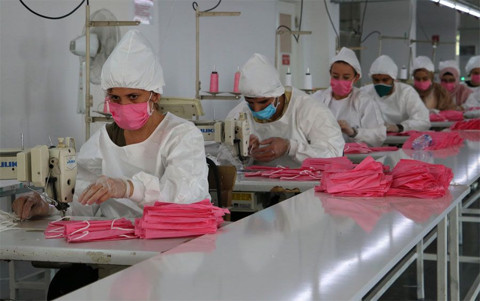 atölyelerde kumaştan maske, sağlık çalışanlarının tulum ve
