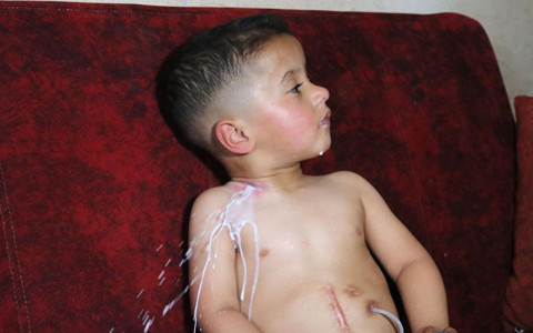 Adana'da yemek borusu olmayan Muhammed'in içtiği sıvılar boynundan fışkırıyor