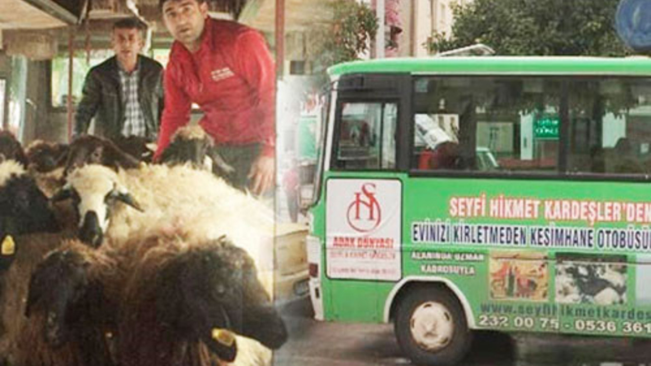 Adana'da hayvancılıkla uğraşan Seyfettin Tekin otobüsün yarısını kesimhane yarısını ahır yaptı. Adana’da 14 yıldır hayvancılıkla uğraşan girişimci, yarısını ahır, yarısını da kesimhaneye dönüştürdüğü bir otobüste mobil adaklık kurban kesimi hizmeti veriyor. Çukurova ilçesinde bulunan Adnan Kahveci Bulvarı’nda ailesiyle birlikte kurban ve adaklık hayvan satışı yapan Seyfettin Tekin, müşterilerine daha iyi hizmet verebilmek için ilginç bir yönteme başvurdu. Eski model bir otobüsün koltuklarını kaldırıp, yarısını ahır yarısını da hayvan kesim alanı olarak tasarlayan Tekin, 45 bin liraya mal ettiği otobüsün tepesine koyduğu su deposu ve içerisindeki tesisat sayesinde de hijyen problemini çözdüğünü söyledi. Çok sayıda yaşlı müşterisi olduğunu ve vatandaşların evinin önüne giderek çevreyi kirletmeden, araç içerisinde ücretsiz kesim yaptığını söyleyen Tekin: “Koyunların yemleri, suları da ayrı bölmede. Koyunlar arka kapıdan giriyor, kesim ise ön kapıdan. Sistemli bir yer yaptık. Çok rahat. Otobüsü hizmete geçireli henüz 10 gün oldu. Şu an çok güzel bir ilgi var ama bunu geç yaptık diye düşünüyorum” ifadelerini kullandı. Koyunların müşterinin kapısının önünde kesilip, parçalanıp, poşetlenerek teslim edildiğini dile getiren Tekin, “Türkiye’de ve dünyada ilk defa bu işi biz yaptık” dedi. Daha büyük bir otobüs üzerinde de çalıştıklarını sözlerine ekleyen Seyfettin Tekin, 15 Temmuz 2017’de şehit yakınları ve gazilere et dağıtmak için yeni otobüsüyle 15 Temmuz Şehitler Köprüsü’nde olacağını söyleyerek davette bulundu.