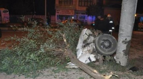Öte yandan olay yerinde yola savrulan otomobilin parçaları arasındaki 140'da takılı kalmış hız göstergesi dikkat çekti.