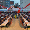 Ağrı'nın Doğubayazıt ilçesinde düzenlen "Kardeşlik İftarı"nda 3 bin kişi aynı sofrada buluştu. Bursa Büyükşehir Belediyesi ile Bursa Ticaret ve Sanayi Odasınca (BTSO), Doğubayazıt ilçesinin Bursa'nın İnegöl ilçesi ile "kardeş ilçe" olması dolayısıyla Doğubayazıt Kaymakamlığı yanındaki iftar çadırında "Kardeşlik İftarı" programı düzenlendi. Kur'an-ı Kerim tilaveti ile başlayan programda konuşan Bursa Büyükşehir Belediye Başkanı Alinur Aktaş, Doğubayazıt'ın birlik ve beraberliğin en açık göstergesi olduğunu söyledi. Türkiye’de yaşayan herkesin et ve tırnak gibi ayrılmaz birer parça olduğunu vurgulayan Aktaş, "Birbirimize sahip çıkalım, ramazan sofralarında olduğu gibi hep beraber olalım." dedi. Doğubayazıt'ın bir yıl içerisinde caddeleri, sokakları ve tarihi mekanlarıyla büyük bir değişim içerisine girerek güzelleştiğini anlatan Alinur Aktaş, şunları söyledi: "Geçen yıl İnegöl Belediye Başkanı olduğum dönemde Doğubayazıt Belediyesine danışman olarak görevlendirildim. Buraya katkı, destek vermeye çalıştık ama sağ olsun çok değerli kaymakamımız ve dostumuz Ulaş Akhan kardeşim burada önemli çalışmalara imza attı. Doğubayazıt değişmeye başladı, caddeler ve sokaklar güzelleşti, tarihi mekanlar ortaya çıktı." - "Kardeşlik devam ederse, İslam coğrafyası huzura kavuşacak" Doğubayazıt Kaymakamı ve Belediye Başkan Vekili Ulaş Akhan ise Doğubayazıt'ın son 2 yılda çok ciddi aşamalar kaydettiğine dikkati çekerek, "İnşallah bundan sonra da gelişmeye, kalkınmaya devam edeceğiz. Tüm bunların yanında en önemlisi Doğubayazıt'ta huzur ve güvenin temin edilmesidir. Eğer bu huzur ve güven temin edilirse Doğubayazıt yine şahlanışını sürdürecek ve bölgenin en önemli ekonomik, ticari, sosyal ve kültürel merkezi olmaya devam edecek." diye konuştu. Birlik ve beraberliğin önemine vurgu yapan Akhan, "Bizler kardeşliğimizi, muhabbetimizi, sevgimizi devam ettirirsek, samimiyetle, içtenlikle, kafamızın arkasında başka hiçbir plan olmadan birbirimize kardeş gibi davranma şuuruna erişirsek, inşallah memleketimiz de huzur bulacak, İslam alemi de huzur bulacak." ifadelerini kullandı. Programa, BTSO Başkanı İbrahim Burkay, AK Parti Doğubayazıt İlçe Başkanı Nebahat Öner, Bursalı iş adamları, askeri erkan, sivil toplum kuruluşlarının temsilcileri, muhtarlar ve vatandaşlardan oluşan 3 bin kişi katıldı. Organizasyonun yapıldığı iftar çadırı ve bulunduğu alan Türk bayrakları ile süslendi. Organizasyonun yapıldığı iftar çadırı ve bulunduğu alan Türk bayrakları ile süslendi.