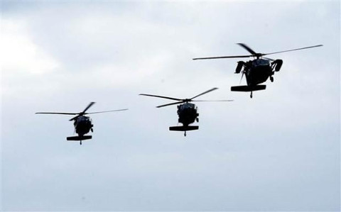 Galerinin tamamı için tıklayınızBaşbakan Davutoğlu ve beraberindekileri taşıyan helikopterler