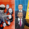 Resimlerde iktidar ve ona yakın kimi kurumlar yolsuzlukla suçlanırken, toplumun çalışan kesimleri de ahtapotun kolları arasında gösterildi.