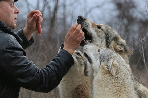 Galerinin tamamı için tıklayınızMAKEDONYA'nın kuzeybatısındaki Kalkandelen şehrinde, Şar dağının eteklerindeki bir evde yaşayan İsmaili ailesi, evcilleştirdikleri üç kurdu ailenin parçası olarak görüyor. Bakımı üstlendiği üç kurtla ilişkisi görenleri hayrete düşüren İsmaili ailesi, tehlikeli olan kurtlar hakkında bilinenlerin aksine onlarla mutlu bir yaşam sürüyor. Günde bir kez beslenen kurtlara, genellikle kemik ya da haşlanmış yiyecekler verdiklerini anlatan Fadil İsmaili (fotoğrafta), küçük yaştan itibaren hayvanlara karşı büyük sevgi beslediğini aktardı.
