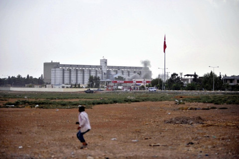 İç karışıklığın sürdüğü Suriye tarafından atılan bir top mermisi Akçakale ilçe merkezine birkaç yüz metre mesafedeki Toprak Mahsulleri Ofisi yakınlarına düştü.